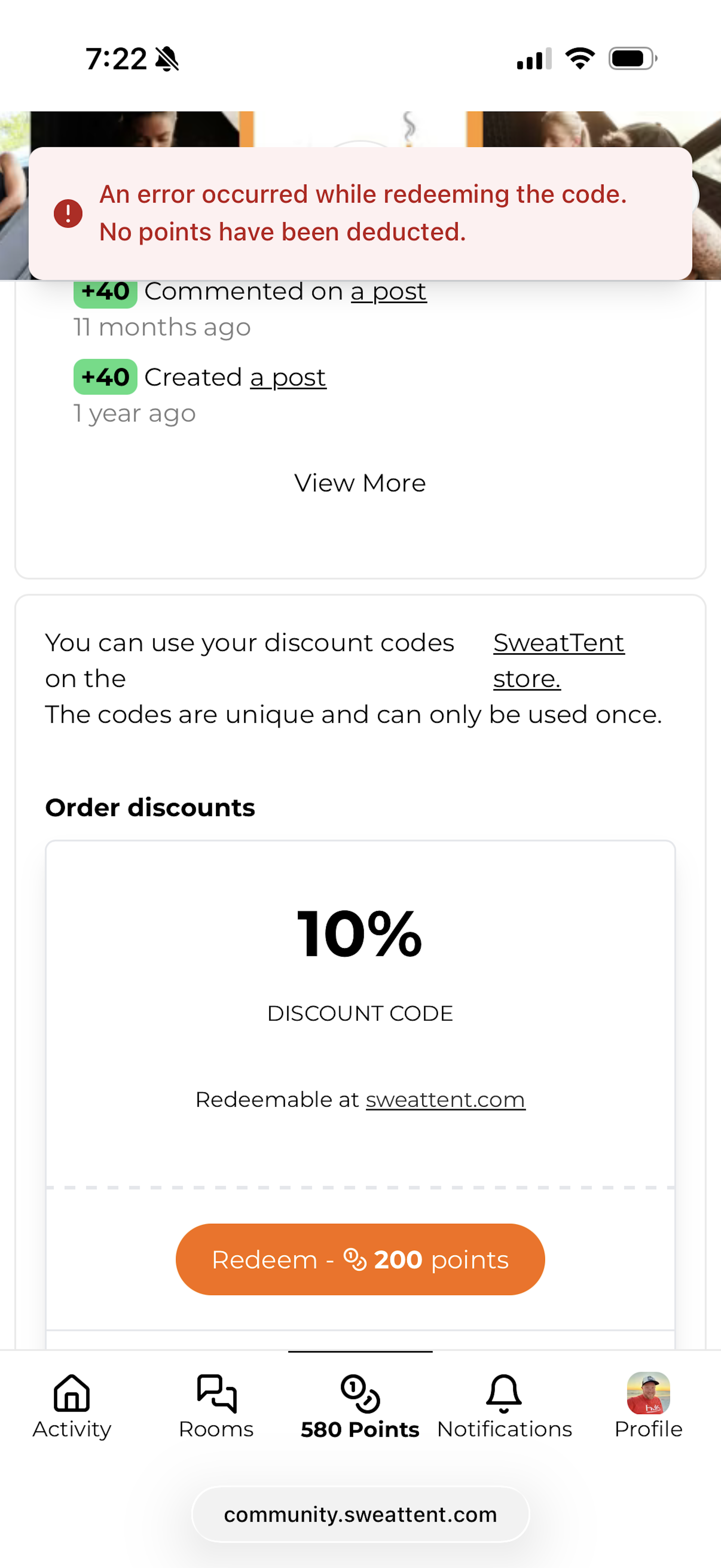 I’m trying to redeem points for a purchase but keep getting the error in the photo. Any ideas?