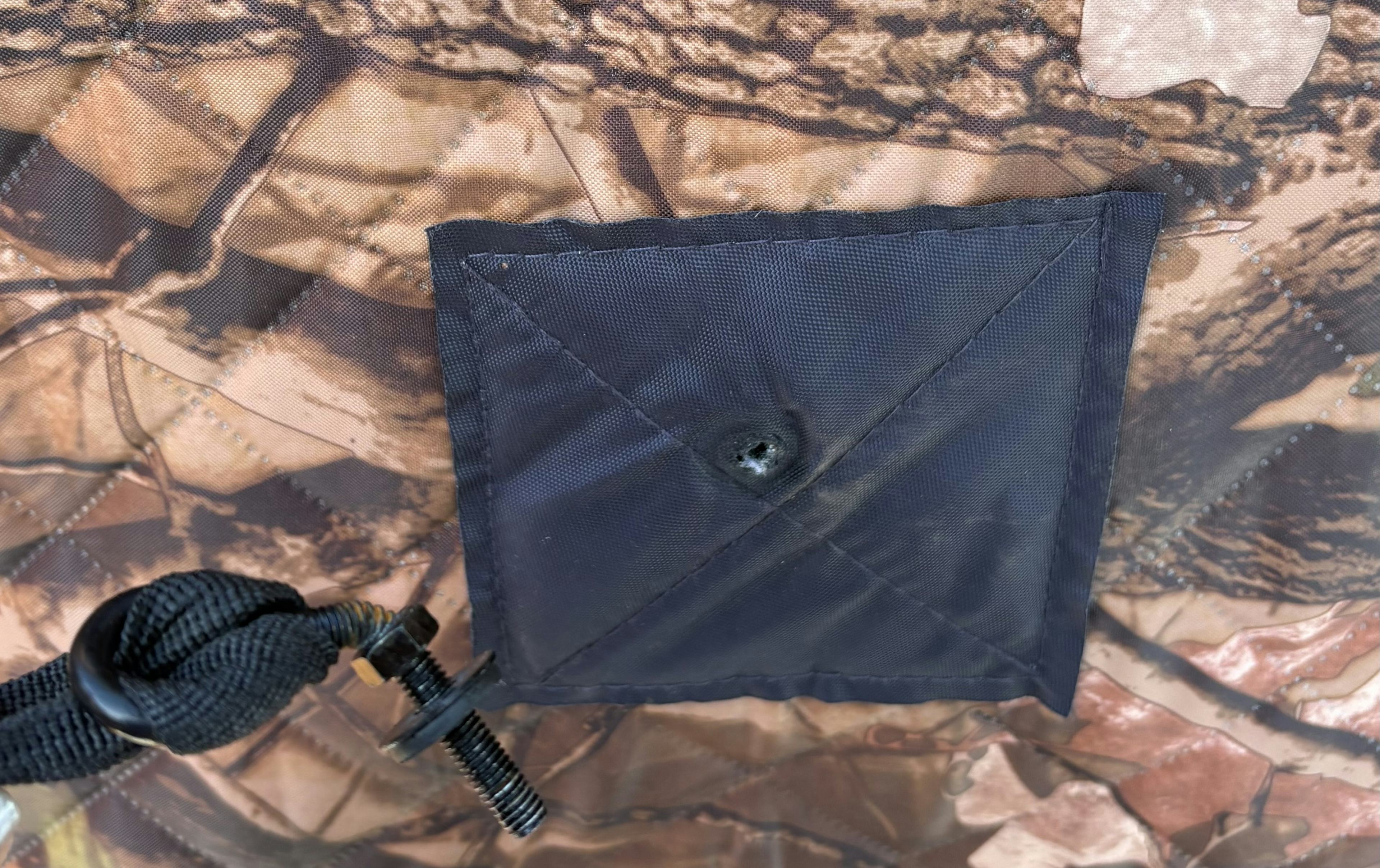 After a period of heavy wind my tent blew over and one of the walls was damaged. On the outside the screw hook that connects the tie to the stake was bent and on the inside the nut popped off (see images). While the bent screw is still usable, we were not able to locate the nut and we don't have any spare parts. Any suggestions on how to secure the wall or what to use for replacement parts?