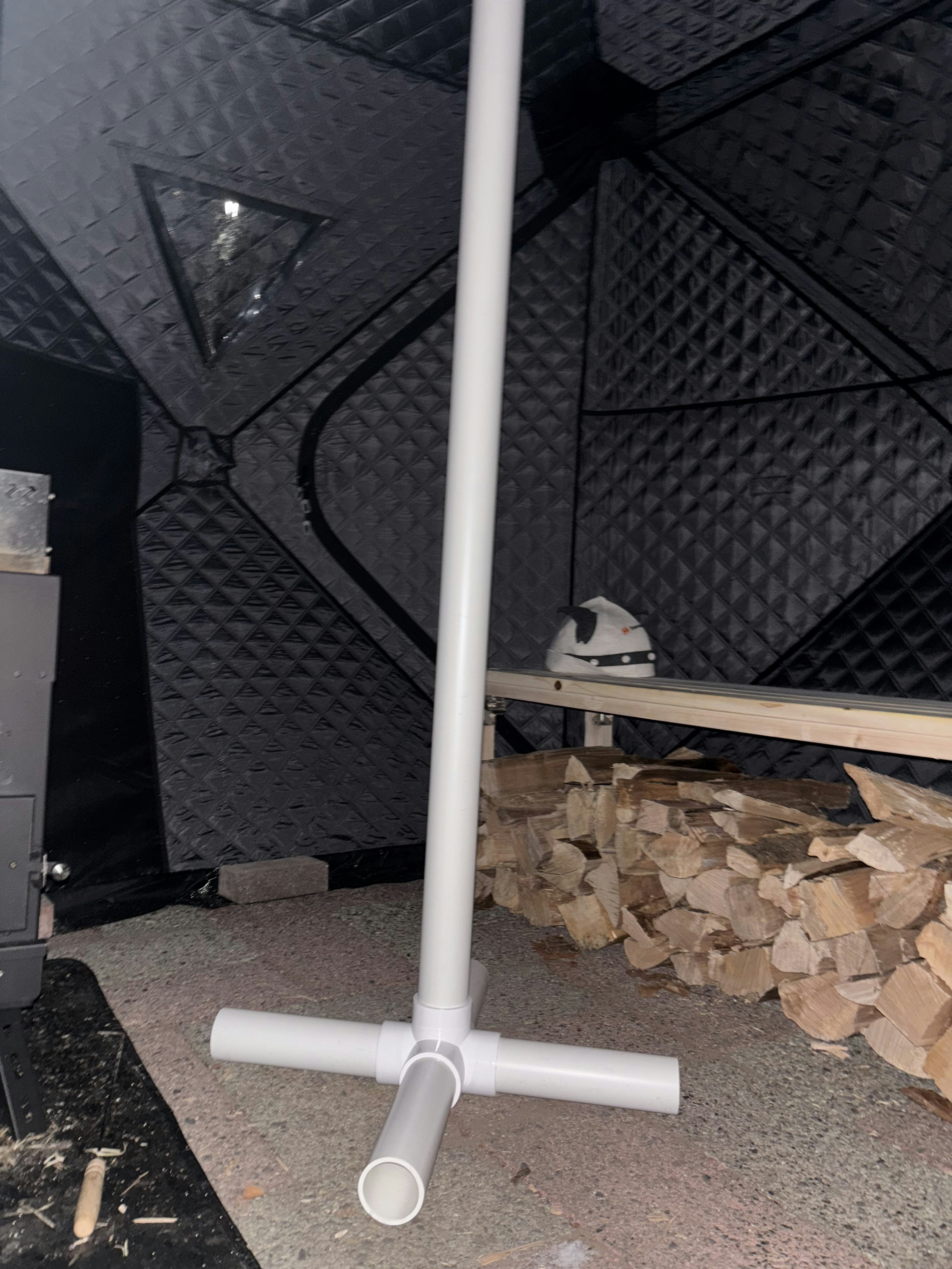 One day when we had a lot of snow I went out per usual to use the sauna. Eventually what happened was all the snow melted and then turned to ice collapsing the top. Not breaking it, just folding it within itself. If anyone ever has had this happen this is the perfect $40 remedy. Measure and cut to your specs and it can go right on the plastic hockey puck dead center of the roof and won’t budge ( as long as you measure right )