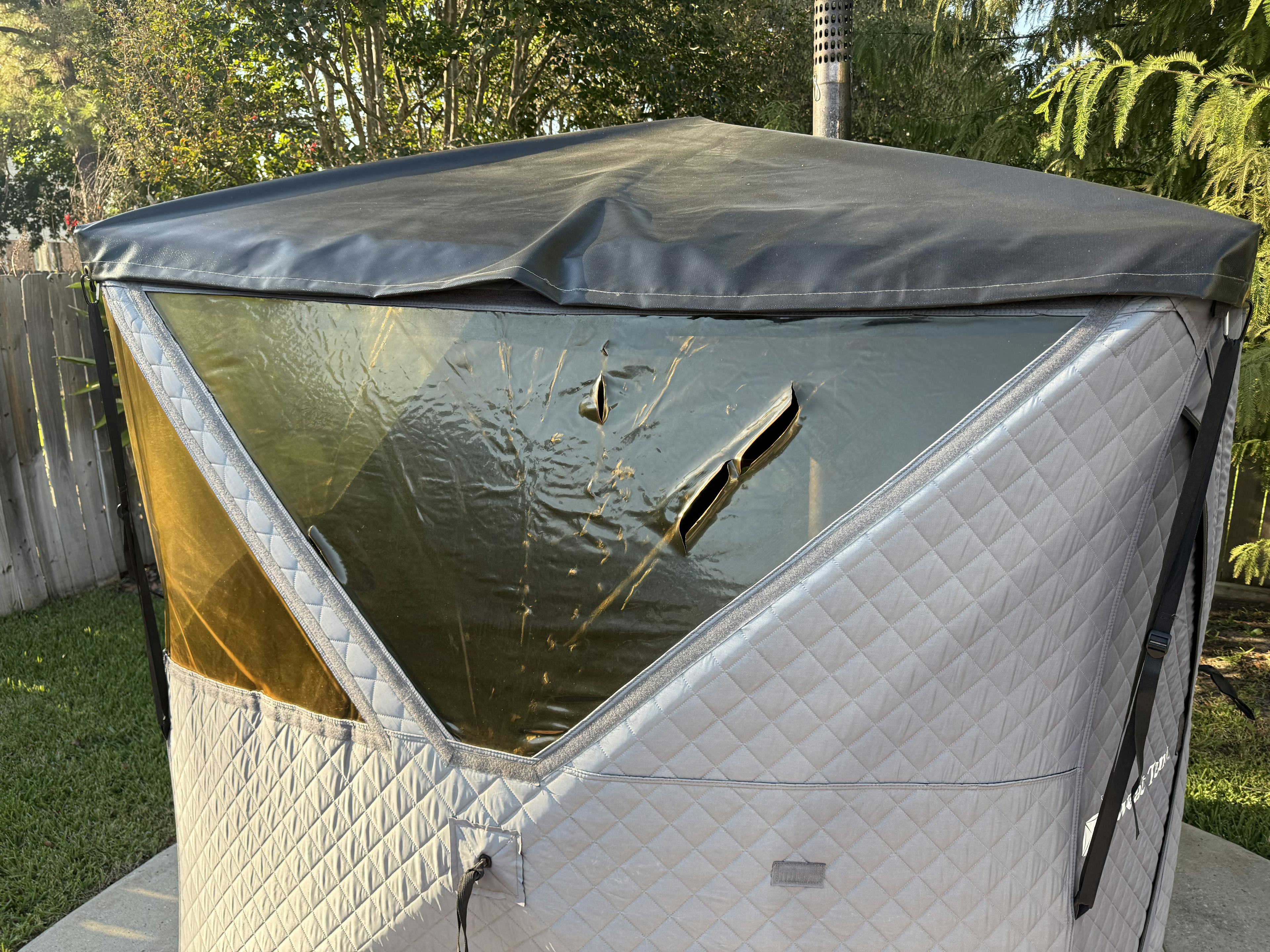 Hi, I stored my Sweat tent during the hot Texas summer, and after installing it back recently windows started to tear along the folding lines. Is there anything that can be done?