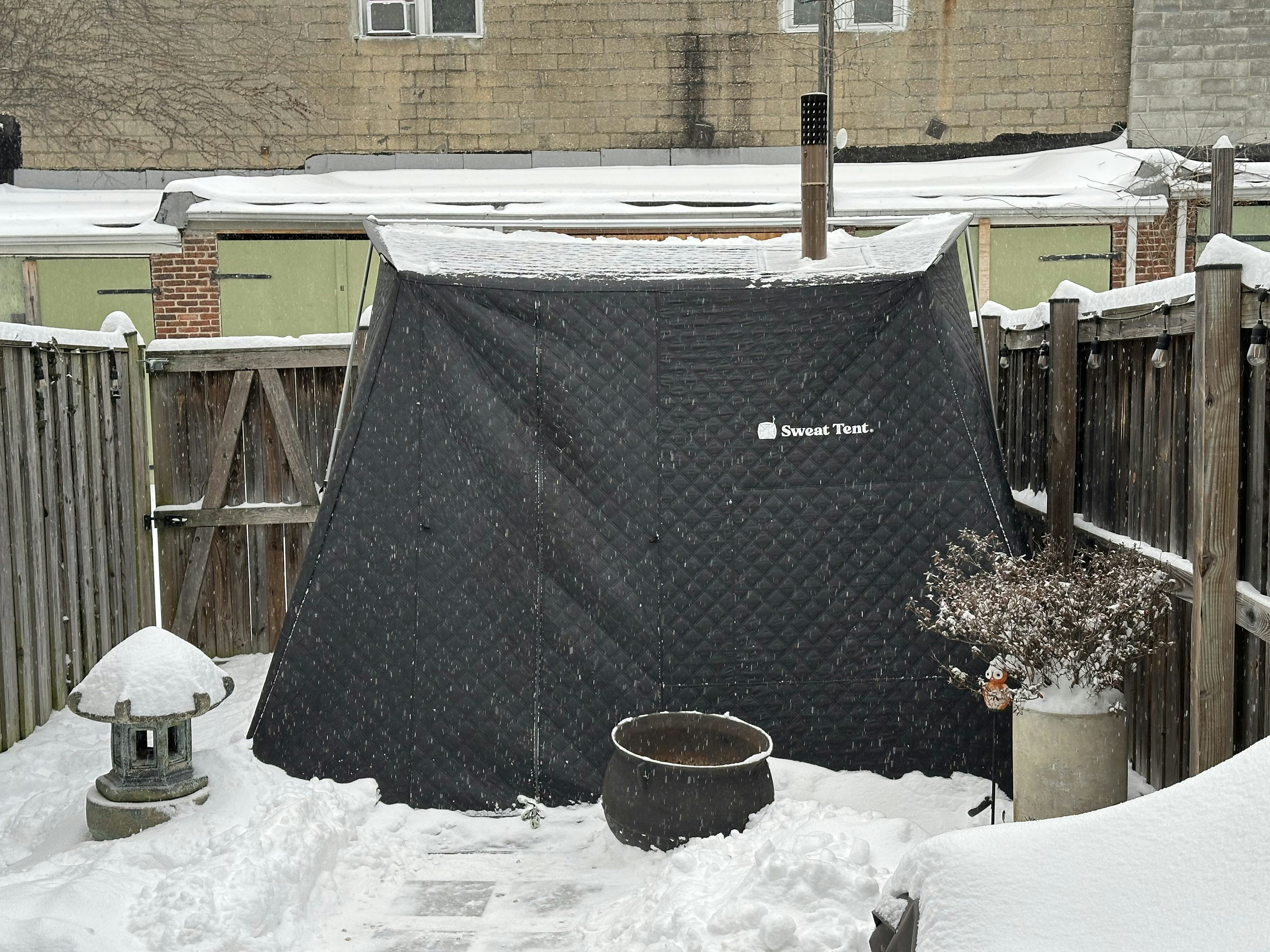 Time for some nighttime 20degree snowy sauna action . Shoveled snow to make a pile to sit in when I exit the sauna for a little contrast therapy.